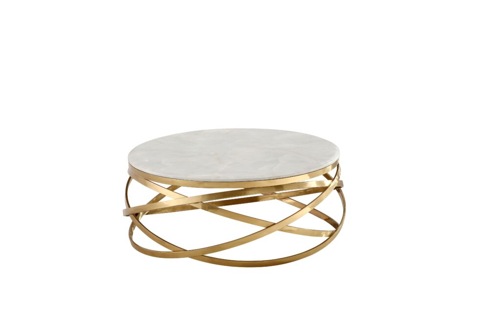 - Mit diesem C1018-Weiß und Gold Cauchtisch (ca. 100 x 100 cm) Mit natürlichem Marmor unterstreichen Sie das trendig-elegante Ambiente in Ihrem Zuhause