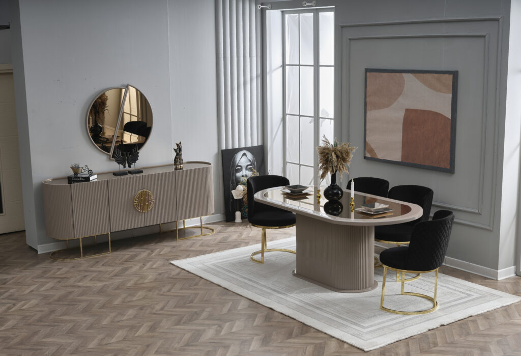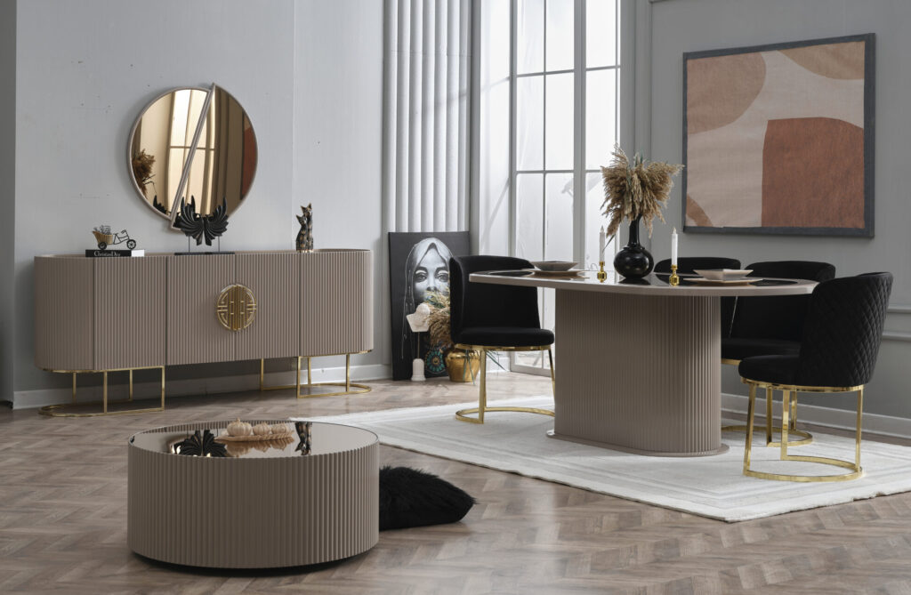 - Enthält 6 Holzteile in einem unverwechselbaren Cappuccino-Ton mit goldenen Details: