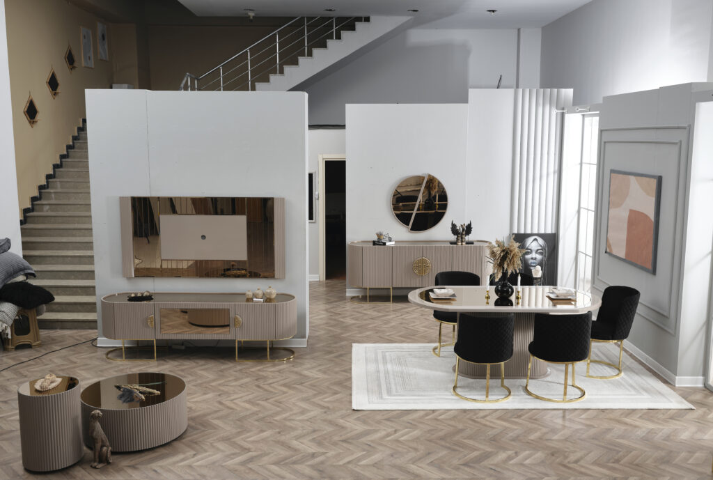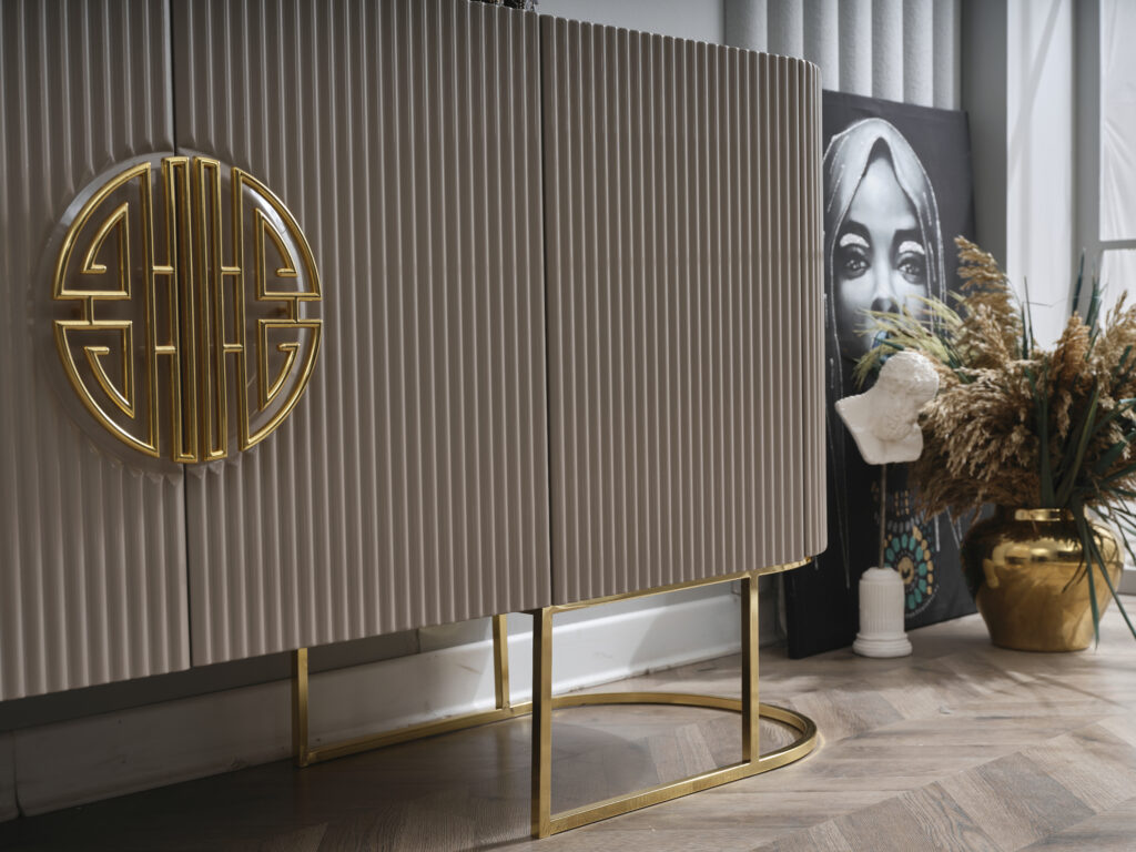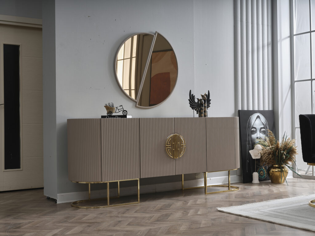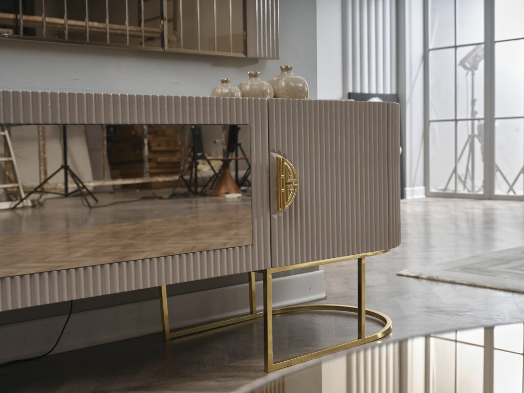 - Luxus-TV-Tisch in Cappuccino-Farbe mit eingebauten Schubladen 210 x 52 x 65 cm