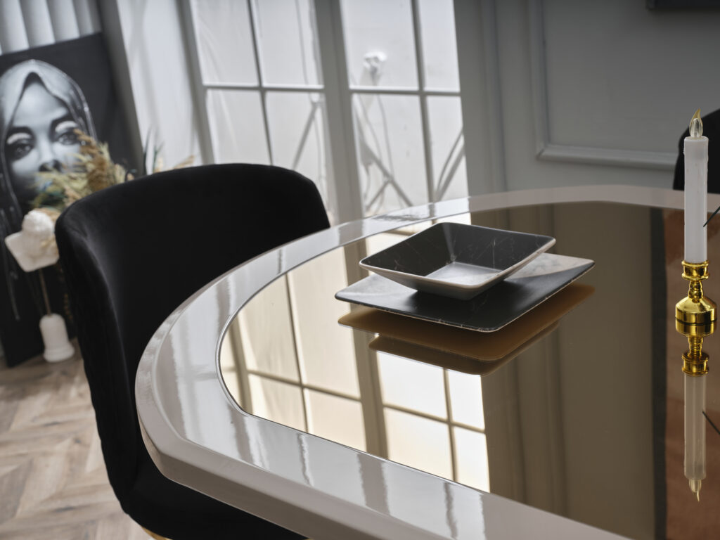 - Großer Esstisch mit eleganter Optik und markanter Glasfront 190x100x78 cm