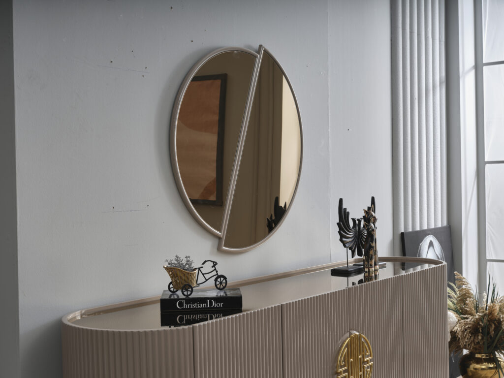 - Hängerahmen mit reflektierendem Glas verziert über dem Fernsehtisch 180x90 cm