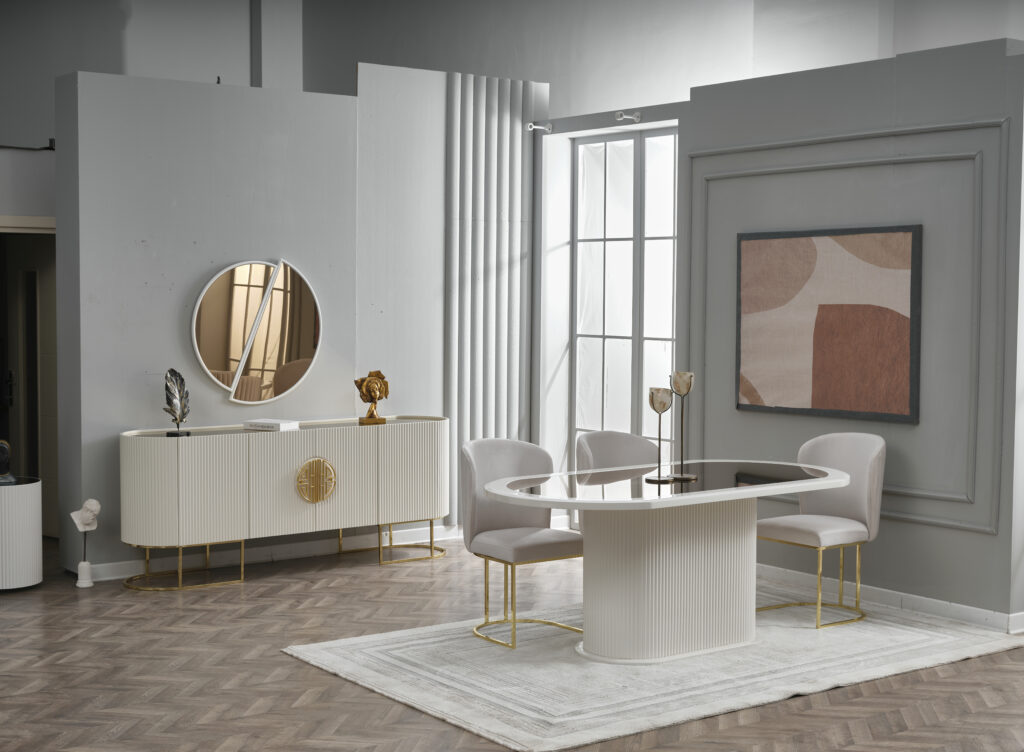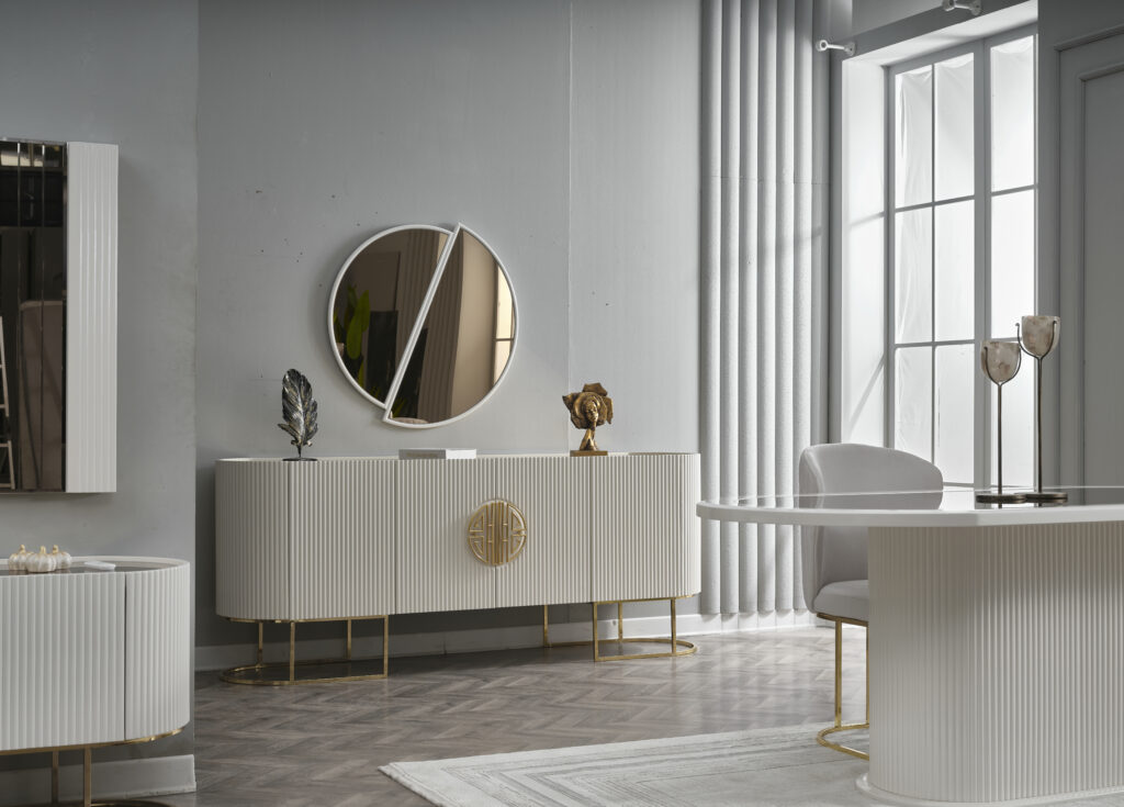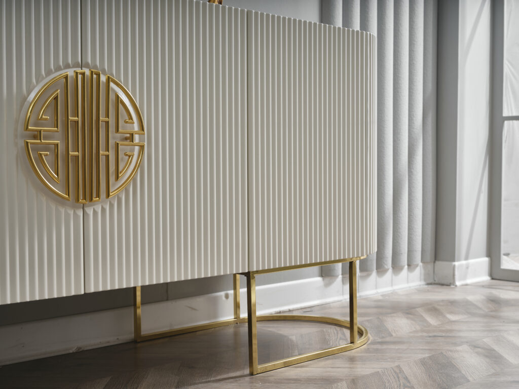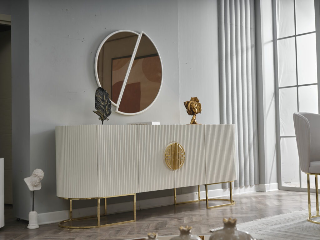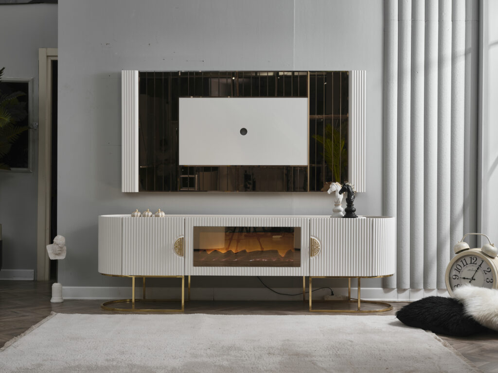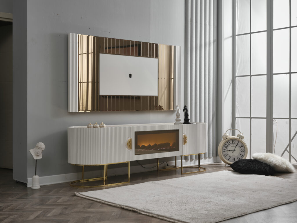 - Luxus-TV-Tisch in Crame-Farbe mit eingebauten Schubladen 210 x 52 x 65 cm